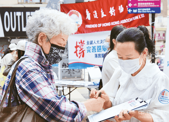 市民踴躍簽名,支持完善選舉制度,落實(shí)愛國者治港。(中新社資料圖片)