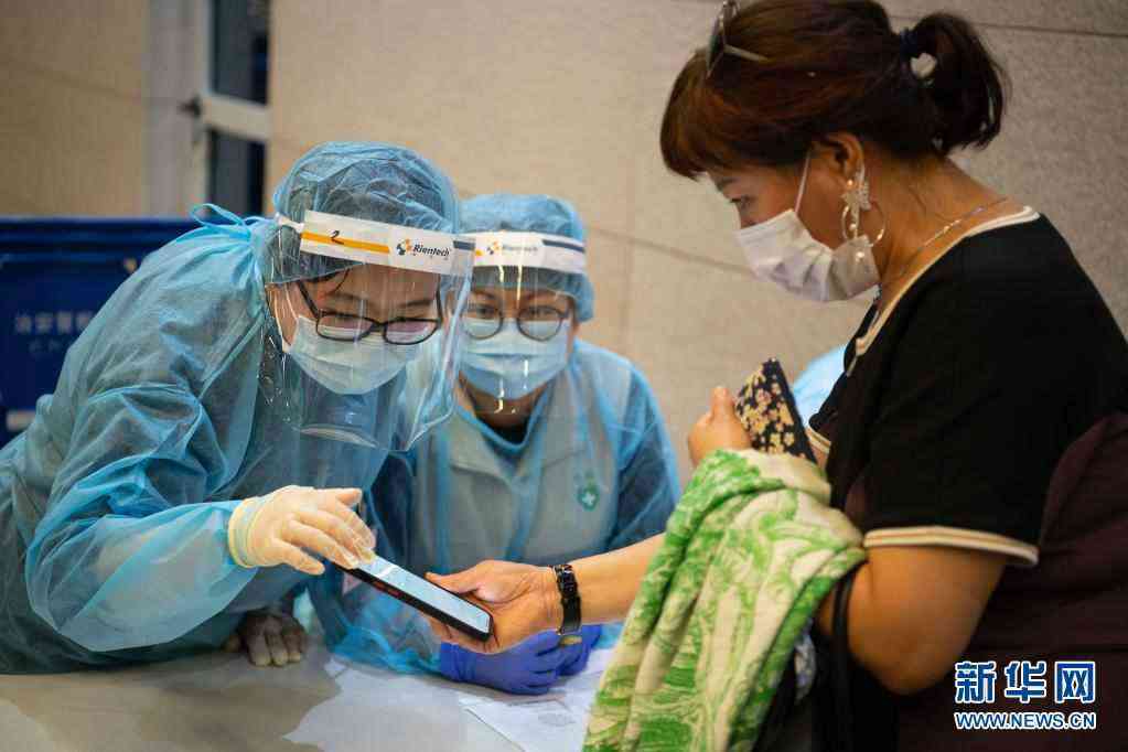 4月29日,澳門衛(wèi)生局人員協(xié)助旅客填寫澳門健康碼。新華社記者 張金加 攝