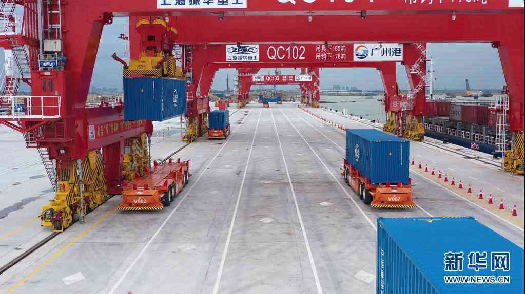 當日,粵港澳大灣區(qū)首個全自動化碼頭廣州港南沙四期工程成功進行實船聯(lián)合調(diào)試。這套自動化操作系統(tǒng)融合了北斗導航、5G通信、人工智能、云計算、大數(shù)據(jù)分析等先進技術(shù),我國擁有完全自主知識產(chǎn)權(quán)。新華社發(fā)(廣州港集團供圖)