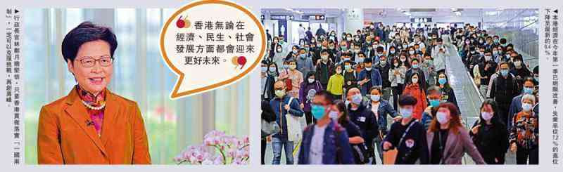 圖:左:行政長(zhǎng)官林鄭月娥堅(jiān)信,只要香港貫徹落實(shí)“一國(guó)兩制”,一定可以克服挑戰(zhàn),再創(chuàng)高峰。右:本港經(jīng)濟(jì)在今年第一季已明顯改善,失業(yè)率從7.2%的高位下降至最新的6.4%。