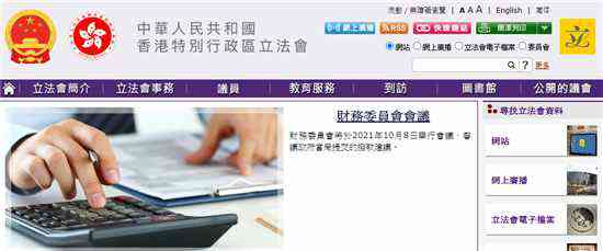 立法會(huì)網(wǎng)頁新增國徽。(網(wǎng)站截圖)