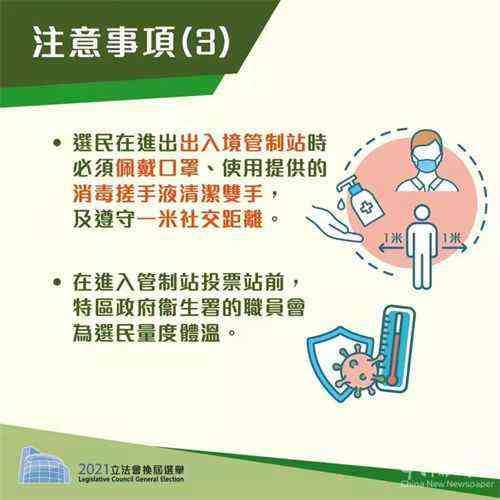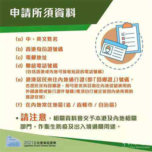 2021年香港立法會(huì)換屆選舉將于12月19日舉行。為便利身在內(nèi)地的合資格地方選區(qū)及功能界別選民于投票日,在符合特定條件下豁免檢疫安排回港投票,香港政府宣布2021年立法會(huì)換屆選舉選民從內(nèi)地返港投票安排(安排)的詳情,在3個(gè)香港/深圳邊境管制區(qū)香港一側(cè)(即香園圍、羅湖、落馬洲支線出入境管制站)設(shè)立投票站?,F(xiàn)時(shí)身處內(nèi)地合資格的地方選區(qū)及功能界別選民,如欲于投票日在該3個(gè)出入境管制站的其中一個(gè)投票站投票,可于12月1日早上9時(shí)至12月8日下午6時(shí)透過(guò)網(wǎng)上登記系(www.reo-form.gov.hk/preregistration.htm),遞交登記申請(qǐng)。逾期申請(qǐng)將不獲受理。