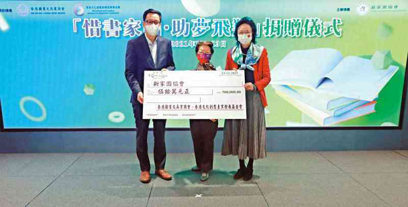 “惜書家園.助夢飛翔”捐贈儀式昨日舉行,主禮嘉賓包括香港圖書文具業(yè)商會會長吳靜怡、香港文化創(chuàng)意產(chǎn)業(yè)發(fā)展基金會主席沈雪明、新家園協(xié)會總干事黃頌。