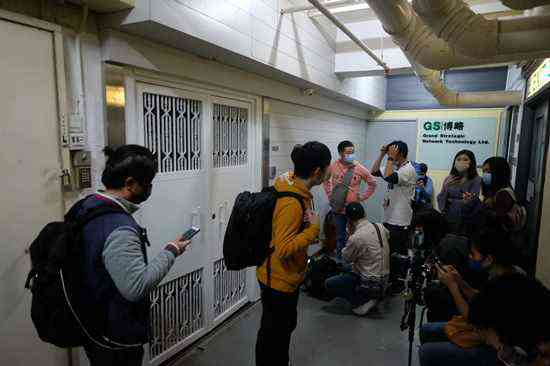 仍有大批記者守候在《立場(chǎng)》門(mén)外,等候采訪進(jìn)一步的訊息。(大公文匯全媒體記者麥鈞杰攝)