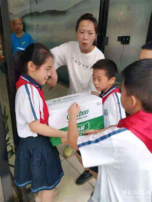 當天,一大早,沅江市桔園學校1903班28位小學生穿著潔白的襯衣,胸前系著鮮艷的紅領(lǐng)巾,似一顆顆火熱的愛心。孩子們愉快地搬運著用他們零花錢捐贈購買的礦泉水,方便面等物質(zhì),送上馳援鄭州的大卡車。