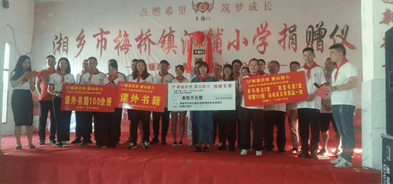 愛心捐贈儀式上,幸福62團隊向湘鄉(xiāng)市梅橋鎮(zhèn)酒鋪小學捐贈現(xiàn)金30萬元將用于酒鋪學校綜合樓和校園維修改造建設,與此同時幸福62團隊還向酒鋪學校捐贈了2個乒乓球臺及教室書架7套,為155名學生捐贈了新的校服和文化用品,;湘郡未來實驗學校1801班和美香閣旗袍等愛心單位為學校送來一批課外書籍。