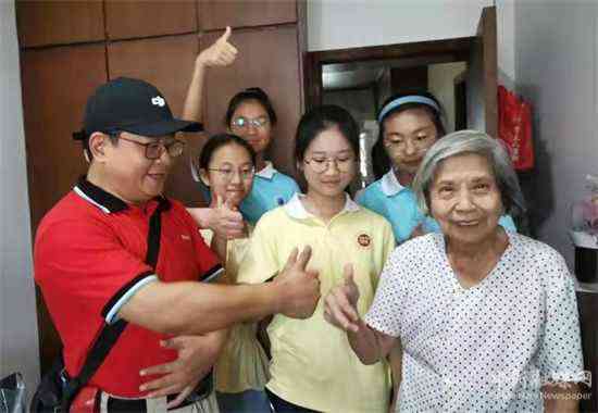 在父母的陪同下,志愿者帶同學們走訪了歸國老華僑陳昉青和陳德新、曾炎娘兩夫妻。同學們?yōu)槔蠚w僑送上慰問的鮮花、物資以及所有人滿滿的祝福。