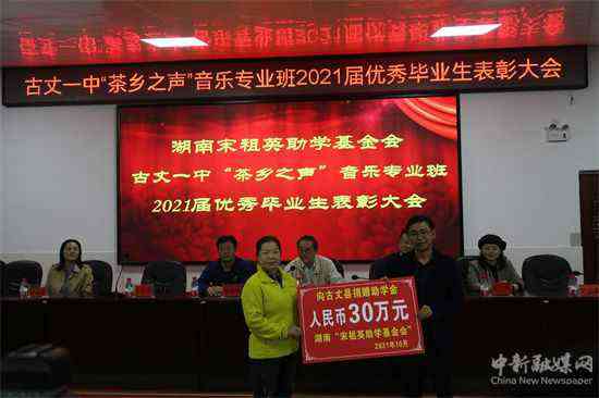 在表彰大會上,宋祖英助學(xué)基金會對古丈一中“茶鄉(xiāng)之聲”音樂專業(yè)班2021屆18名優(yōu)秀畢業(yè)生進(jìn)行了表彰獎勵,共計發(fā)放獎金50000元。與此同時,給古丈縣捐贈助學(xué)金30萬元,助推古丈教育事業(yè)發(fā)展。