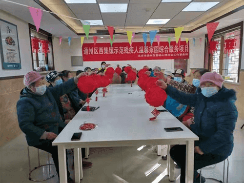 時(shí)光荏苒,年末將至。為回顧一年的幸福收獲,提升殘疾人朋友的幸福指數(shù),北京市通州區(qū)西集鎮(zhèn)溫馨家園聯(lián)合春曉心理社會(huì)工作事務(wù)所于2021年12月2日組織殘疾人朋友們開(kāi)展了“對(duì)稱(chēng)雙福日 稱(chēng)心如意球”——手工“福”字花球制作活動(dòng)。在“20211202”正反對(duì)稱(chēng)日,殘疾人朋友們用雙手將自己一年的幸福結(jié)成花球,制成“福”字,與大家分享自己的福氣。