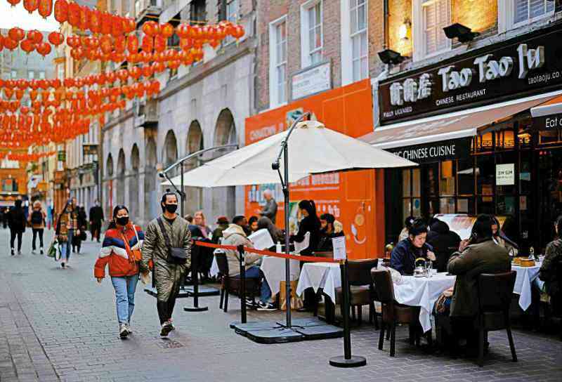 圖:英國4月中旬逐步解封后,有食客前往唐人街用餐。\法新社