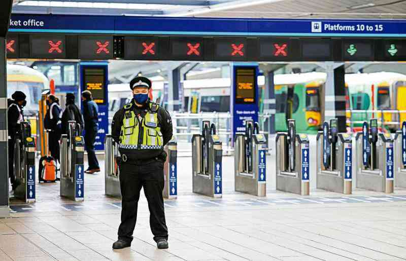 圖:一名警察4月12日在倫敦橋車站站崗。\路透社