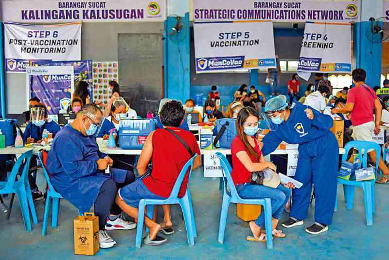 圖:菲律賓馬尼拉大都會民眾21日接種新冠疫苗。\路透社