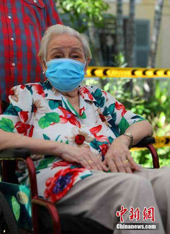 當(dāng)?shù)貢r(shí)間7月2日,中國(guó)駐柬使館一行赴金邊疫苗接種現(xiàn)場(chǎng),看望接種第二劑中國(guó)產(chǎn)新冠疫苗的101歲華裔老人賀琴女士。圖為賀琴女士。     中新社記者 歐陽(yáng)開宇 攝