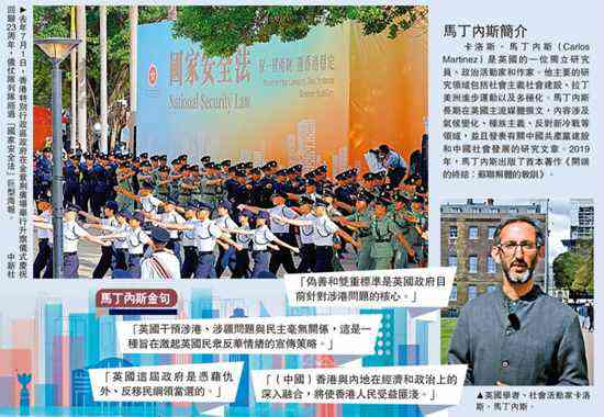 《大公報》昨日書面專訪馬丁內(nèi)斯,他表示美英等插手香港與民主毫無關(guān)系,目的是破壞和削弱中國,而香港國安法和“愛國者治港”旨在防止外國干涉,有助于保護(hù)香港穩(wěn)定發(fā)展。