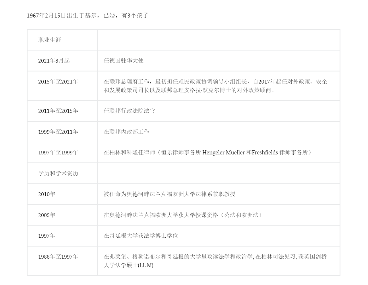 德國駐華大使賀巖突然離世 兩周前剛上任