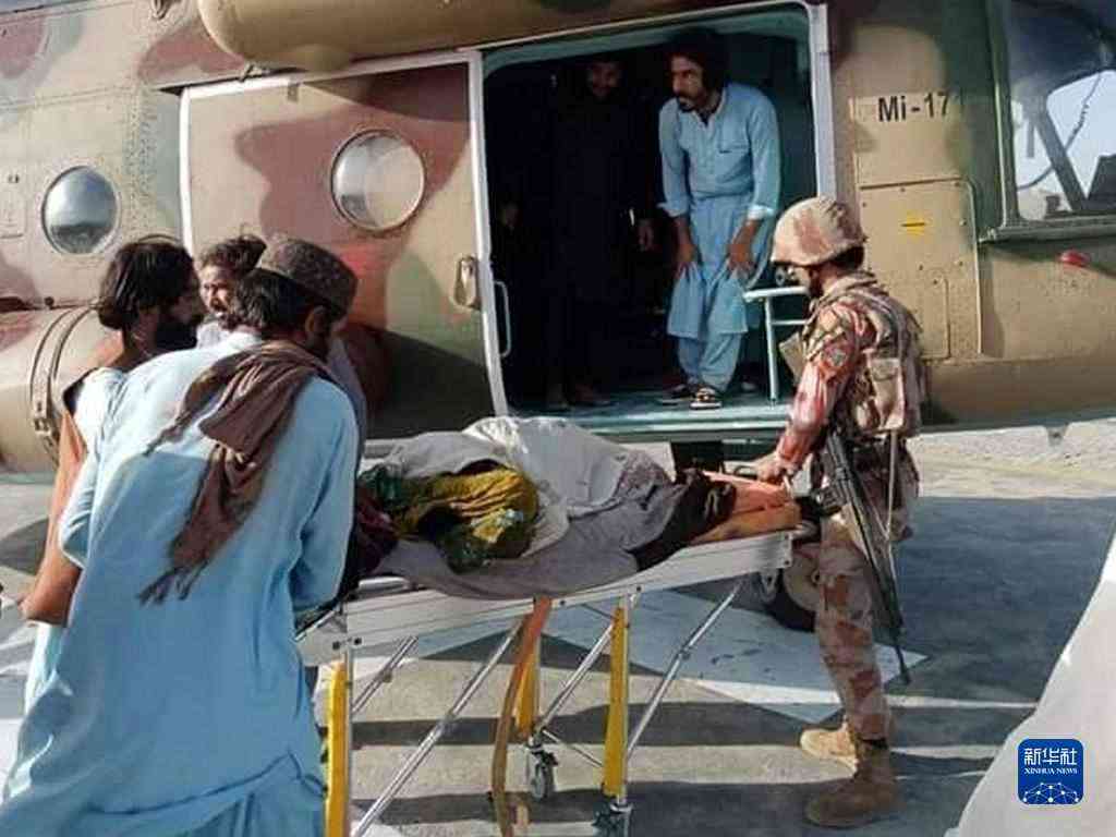 這張巴基斯坦國(guó)家災(zāi)難管理局提供的照片顯示,10月7日,在俾路支省赫爾奈地區(qū),人們轉(zhuǎn)移一名傷者。