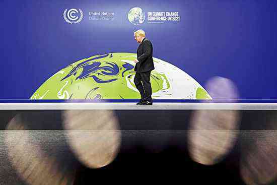 圖:英國(guó)首相約翰遜11月1日準(zhǔn)備迎接其他與會(huì)人員。\美聯(lián)社