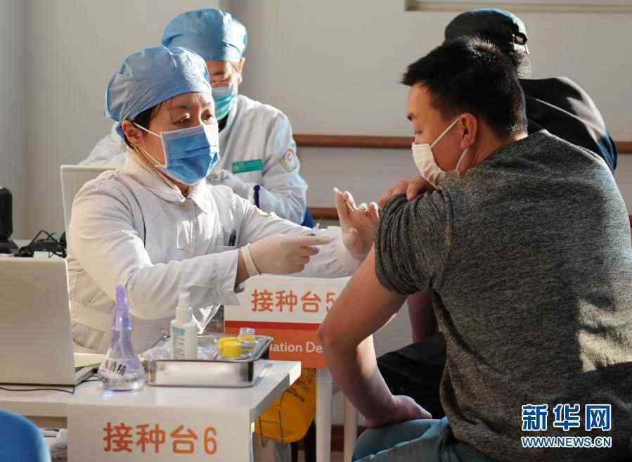2021年1月3日,在位于北京市西城區(qū)廣安門外街道紅蓮社區(qū)衛(wèi)生服務(wù)站的接種點(diǎn),醫(yī)護(hù)人員為接種人員注射疫苗。