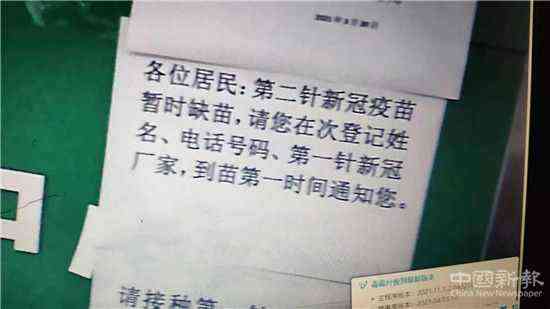 剛走入大廳,便覺得氣氛不對,沒有以往排隊的場景,服務臺旁邊張貼著“各位居民,第二針新冠疫苗暫時缺苗請您在此登記姓名,電話號碼,第一針新冠廠家到苗,第一時間通知您”的通知。二樓的工作人員告訴記者,之前的新冠廠家是北京的,已經沒有苗,現(xiàn)在要接種是別的廠家,最新接種的苗是要打3針。