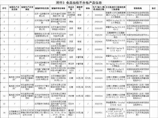 北京市場(chǎng)監(jiān)管局介紹,抽檢糕點(diǎn)70批次,全部合格;罐頭48批次,全部合格;食用農(nóng)產(chǎn)品420批次,其中合格樣品411批次,不合格樣品9批次;肉制品82批次,其中合格樣品81批次,不合格樣品1批次;食糖19批次,其中合格樣品16批次,不合格樣品3批次;其他食品(乳酸菌復(fù)配粉、散裝自制酒、水發(fā)產(chǎn)品、磷脂、冷鏈即食食品、工業(yè)化豆芽、食品用預(yù)拌(料)粉、索馬甜、氮?dú)?、瓜爾膠、即食鮮切蔬果)65批次,其中合格樣品64批次,不合格樣品1批次。