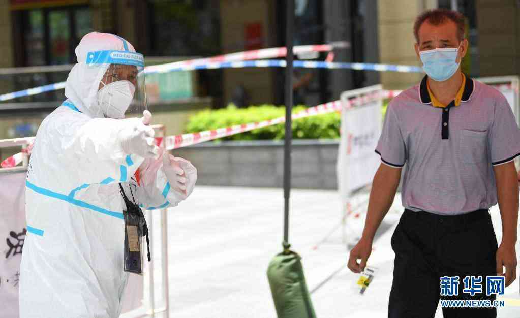 6月12日,在廣州荔灣區(qū)白鶴洞街廣鋼新城,醫(yī)務(wù)人員舉手示意居民前來(lái)進(jìn)行核酸檢測(cè)采樣。新華社記者 鄧華 攝