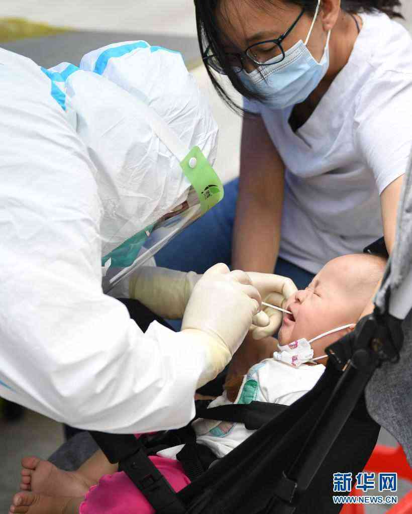 6月12日,在廣州荔灣區(qū)白鶴洞街廣鋼新城,醫(yī)務(wù)人員為幼兒進(jìn)行核酸檢測(cè)采樣。新華社記者 鄧華 攝