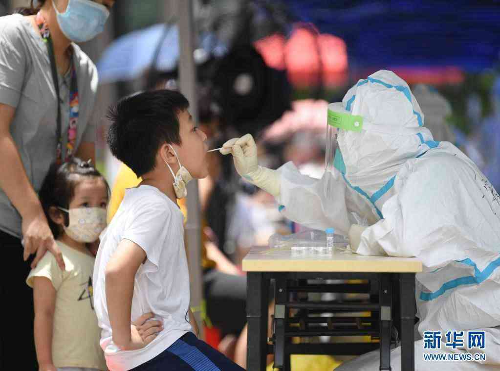 6月12日,在廣州荔灣區(qū)白鶴洞街廣鋼新城,醫(yī)務(wù)人員為小朋友進(jìn)行核酸檢測(cè)采樣。新華社記者 鄧華 攝