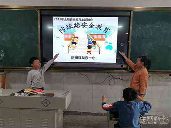 新田縣龍泉一小召開防踩踏安全教育主題班會