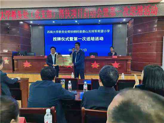 中國(guó)新報(bào)(特約記者 余盛亮)5月7日,西南大學(xué)教務(wù)處幫扶桐梓縣婁山關(guān)街道將軍希望小學(xué)授牌儀式暨第一次送培活動(dòng)在婁山關(guān)街道將軍希望小學(xué)舉行。