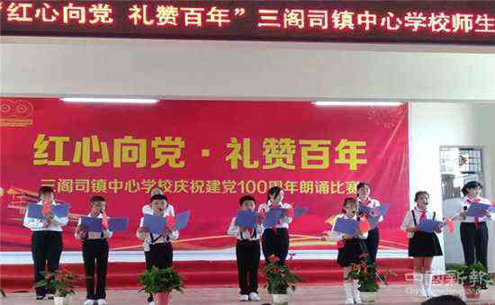 中國(guó)新報(bào)(記者 李社慶 通訊員 何婷 劉璐 楊絮  唐麗梅)一百年風(fēng)雨兼程,一世紀(jì)滄桑巨變,2021年迎來了中國(guó)共產(chǎn)黨建黨100周年。為進(jìn)一步弘揚(yáng)熱愛中國(guó)共產(chǎn)黨,熱愛偉大祖國(guó)為核心的民族精神,加強(qiáng)學(xué)生思想政治教育,迎接中國(guó)共產(chǎn)黨百年華誕的到來。5月8日上午三閣司鎮(zhèn)中心學(xué)校舉行了全鎮(zhèn)師生“紅心向黨,禮贊百年”的經(jīng)典誦讀活動(dòng)。