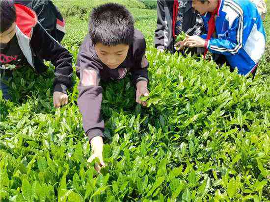 在農(nóng)民伯伯的指導(dǎo)下學(xué)生們認(rèn)識新鮮茶葉,并根據(jù)制茶要求采茶。雖然陽光強烈、氣溫高,但擋不住學(xué)生們采茶熱情。采茶結(jié)束后,來到實踐基地的制茶車間,技術(shù)人員帶領(lǐng)學(xué)生們認(rèn)識制茶機械,向?qū)W生們介紹綠茶的制茶過程,活動充實有序?;顒又袑W(xué)生們不怕苦、不怕累,一切聽從指揮的優(yōu)秀表現(xiàn)得到基地工作人員的認(rèn)可與表揚。