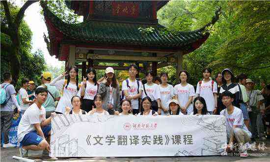 近年來,湖南師范大學(xué)外國語言文學(xué)學(xué)科積極推進(jìn)人才培養(yǎng)模式改革,豐富課程內(nèi)容,創(chuàng)新授課形式,在國務(wù)院學(xué)科評議組成員、中國外國文學(xué)學(xué)會比較文學(xué)與跨文化研究分會副會長鄭燕虹教授的策劃下,開設(shè)了《湖湘文化傳承傳播》《文學(xué)翻譯實(shí)踐》《公示語翻譯實(shí)踐》等一批社會實(shí)踐課程。相關(guān)課程圍繞湖湘文化源流、新時代湖湘文化高質(zhì)量走出去等問題,帶領(lǐng)大學(xué)生走進(jìn)田間地頭、工廠企業(yè)、脫貧一線、改革前沿,在社會大課堂的實(shí)踐中增強(qiáng)自信、增長本領(lǐng)。