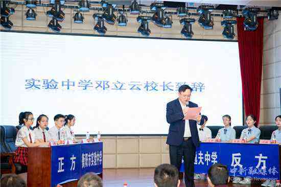 賽前,市實(shí)驗(yàn)中學(xué)校長鄧立云的致辭中,對參賽選手提出了四點(diǎn)希望:希望各位辯手在積極準(zhǔn)備,穩(wěn)定發(fā)揮的基礎(chǔ)上,充分展現(xiàn)語言、思辨的藝術(shù)魅力,能夠真正引起觀眾的思考;希望各位辯手在比賽中能體會到辯論的內(nèi)涵與快樂,達(dá)到思想上的深化和升華;希望辯手們在相互尊重的基礎(chǔ)上,為真理而辯,辯出風(fēng)度,辯出風(fēng)格,收獲知識,收獲友誼;希望同學(xué)們在激烈的論辯中辯明立身之本,論清奮斗方向,打好中國底色,弘揚(yáng)核心價值。