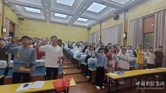 儀式上,125名新團(tuán)員全體起立,1808班周佳豪同學(xué)帶領(lǐng)新團(tuán)員右手握緊拳頭舉過肩,面向鮮艷的共青團(tuán)團(tuán)旗進(jìn)行了莊嚴(yán)的宣誓:“我志愿加入中國共產(chǎn)主義青年團(tuán),堅決擁護(hù)中國共產(chǎn)黨的領(lǐng)導(dǎo),遵守團(tuán)的章程......為共產(chǎn)主義事業(yè)而奮斗。”錚錚誓言響徹會場,響入人心。