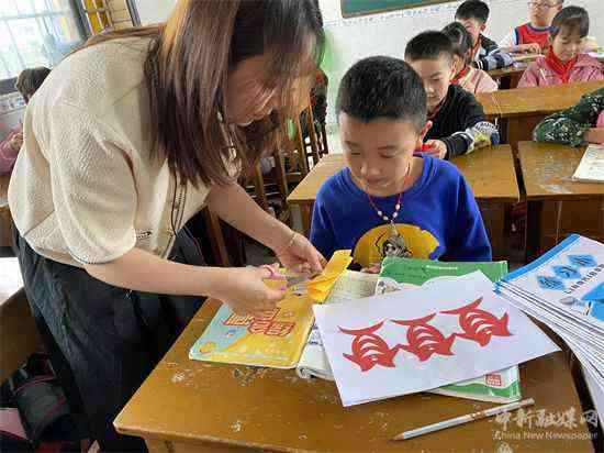 “很帶勁!一剪就剪出這么多胖胖的魚。讓人看了就喜歡。”5月27日,湖南省邵陽市隆回縣金石橋鎮(zhèn)金橋小學(xué)三(2)班學(xué)生楊俊杰開心地笑著說,“這可是邵老師指導(dǎo)好。”
