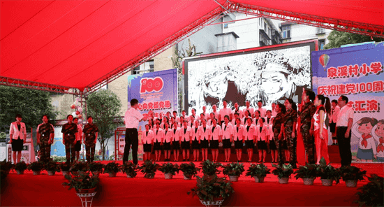 紅旗載著心愿迎風(fēng)飛揚,笑臉伴著希望盡情綻放。5月28日上午,衡陽市珠暉區(qū)泉溪村小學(xué)以“童心向黨頌黨恩 老少同樂慶六一”為主題的慶六一暨建黨100周年文藝匯演正在上演,整個校園沉浸在重溫紅色經(jīng)典、傳承紅色精神的氛圍之中。