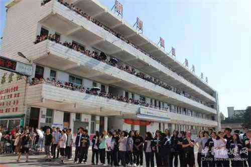 8時(shí)18分,高三學(xué)子帶上赴考的行裝,分班依次聚集在學(xué)校田徑場(chǎng)。此時(shí),高二、高一年級(jí)的學(xué)弟、學(xué)妹們手持送考橫幅、標(biāo)語(yǔ)等送行用具,在班主任的帶領(lǐng)下,井然有序的站立在教室外走廊外側(cè)。初三實(shí)驗(yàn)班學(xué)生手持鮮花與身著旗袍的女老師、女同學(xué)列隊(duì)校園大道兩側(cè)直至校門(mén)口,組成了龐大的送行的“親友團(tuán)”,歡送高三的學(xué)長(zhǎng)們開(kāi)赴高考考場(chǎng)。