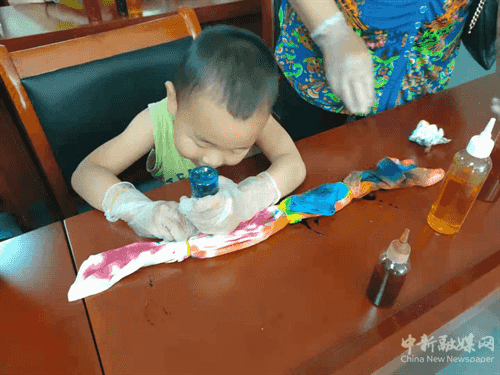 北京市通州區(qū)春曉心理社會工作事務(wù)所工作人員簡述了小組活動原則。大家對分享生活中的樂趣十分開心,在安全的小組氛圍中紛紛聊起了在家里、在學(xué)校的趣事。有的兒童和大家和爸爸媽媽的趣事、有的和大家分享與寵物的趣事,有幾位兒童是同學(xué),和大家繪聲繪色的講起了學(xué)校運(yùn)動會、跳蚤市場等趣味活動...大家在一片笑聲中感受著童年的繽紛色彩和快樂。工作人員帶領(lǐng)大家以沾染的方式表現(xiàn)自己的多彩生活,工作人員教授大家多種扎染方式,兒童自由挑選喜歡的顏色,開始扎染制作。大家相互幫助,浸濕衣服、捆綁、傳遞顏料...處處體現(xiàn)出和諧融洽的小組氛圍。