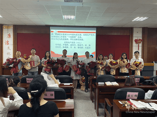 該校副校長顏一新宣讀2020年度衡陽市實(shí)驗(yàn)中學(xué)先進(jìn)黨支部、優(yōu)秀共產(chǎn)黨員、優(yōu)秀黨務(wù)工作者和校“十佳教師”名單。校領(lǐng)導(dǎo)為10位校優(yōu)秀共產(chǎn)黨員、7位優(yōu)秀黨務(wù)工作者、10位“十佳”教師頒獎,學(xué)生送鮮花致意。顏一新副校長還給大家?guī)砣齽t喜訊:學(xué)校陳昌輝老師榮獲湖南省優(yōu)秀共產(chǎn)黨員稱號;校黨總支書記鄧永紅榮獲市教育系統(tǒng)優(yōu)秀黨務(wù)工作者稱號,并在支部書記黨史學(xué)習(xí)競賽中獲二等獎;校團(tuán)委書記尹湘萍在市教育系統(tǒng)“師魂映黨旗”演講賽中獲一等獎。