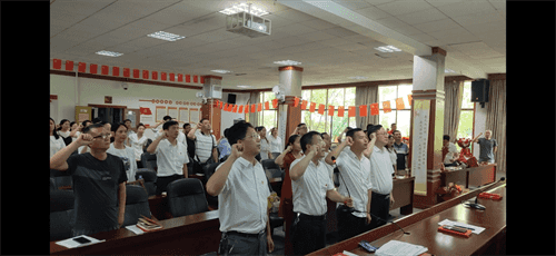 該校黨總支書記鄧永紅帶領(lǐng)新黨員王韜老師及全校黨員宣誓。他們緊握右拳,面向黨旗,鄭重宣誓。在這個特別的日子重溫入黨誓詞、重憶入黨經(jīng)歷、重問入黨初心意義非凡,黨員們紛紛表示要在今后的工作中時刻以黨員的標(biāo)準(zhǔn)嚴(yán)格要求自己,保持昂揚(yáng)狀態(tài),厚植為民情懷,勇?lián)率姑?,奮進(jìn)新征程,彰顯新時代共產(chǎn)黨人的先鋒形象。(王文娟)