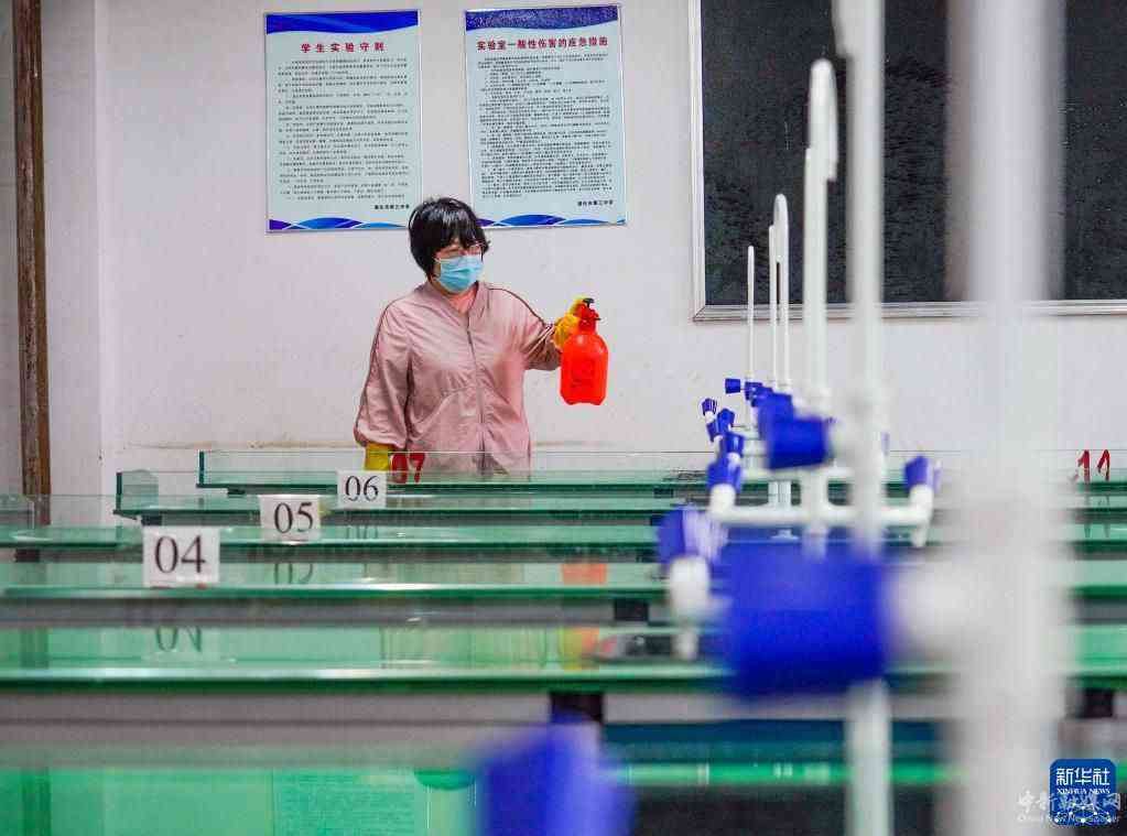 8月28日,河北唐山遵化市第三中學的教師對化學實驗室進行消殺。