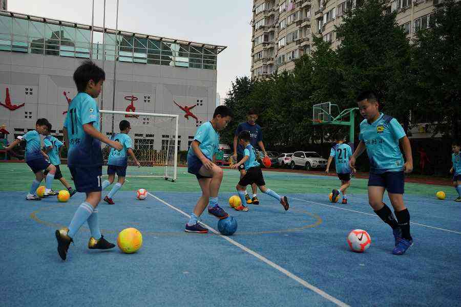 9月1日,上海市第一師范附屬小學(xué),學(xué)生們練習(xí)足球。(中國日報(bào)記者 高爾強(qiáng) 攝)