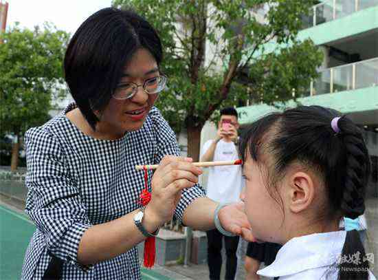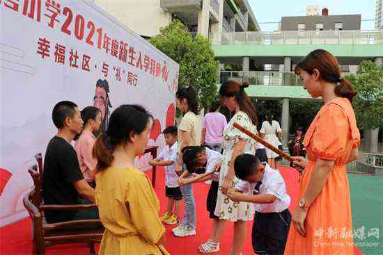 在當(dāng)天的活動(dòng)中,該校按照古法,家長授尺,學(xué)生磬折,敲頭、敲肩、敲身,老師為學(xué)生朱砂啟智,鼓勵(lì)學(xué)生敏而好學(xué)、勵(lì)志報(bào)國、有禮有節(jié)。 (特約記者 巢志斌 攝影報(bào)道)