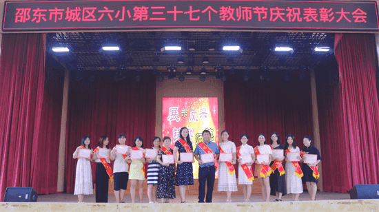 活動(dòng)的高潮在教師節(jié)慶祝表彰大會(huì)上,寬敞明亮的禮堂里,充滿了老師們的歡聲笑語,在熱烈的掌聲中,吳新斌校長將鮮紅的綬帶和獎(jiǎng)狀授予今年榮獲優(yōu)秀教師稱號(hào)的老師們,并號(hào)召大家緊緊團(tuán)結(jié)在一起,為六小的明天而努力奮斗。