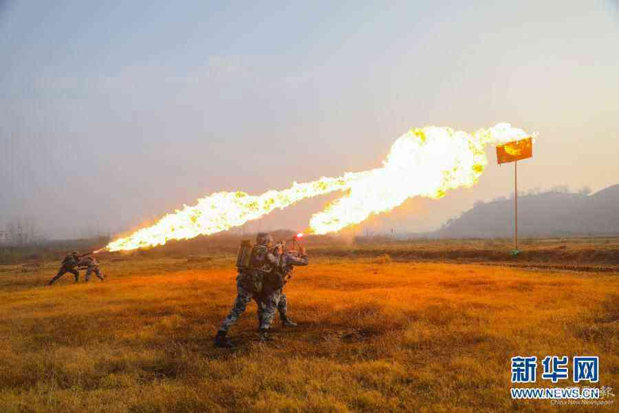 1月4日,駐鄂空降兵某旅組織防化兵開展噴火訓(xùn)練。新華社發(fā)(楊灝峰 攝)