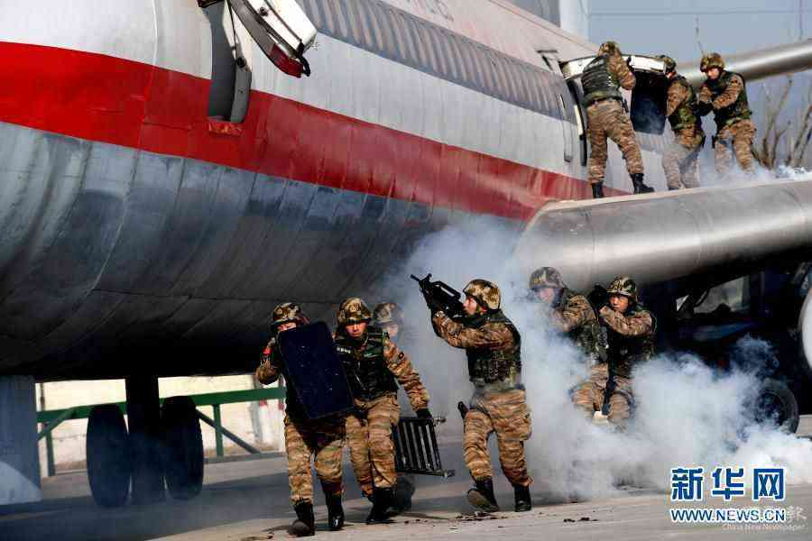 1月4日,武警山西總隊(duì)機(jī)動(dòng)支隊(duì)特戰(zhàn)隊(duì)員開展反劫機(jī)演練。新華社發(fā)(孫玉山 攝)