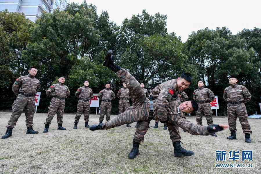 1月5日,武警江蘇總隊(duì)泰州支隊(duì)組織官兵進(jìn)行搏擊課目訓(xùn)練。新華社發(fā)(楊玉崗 攝)