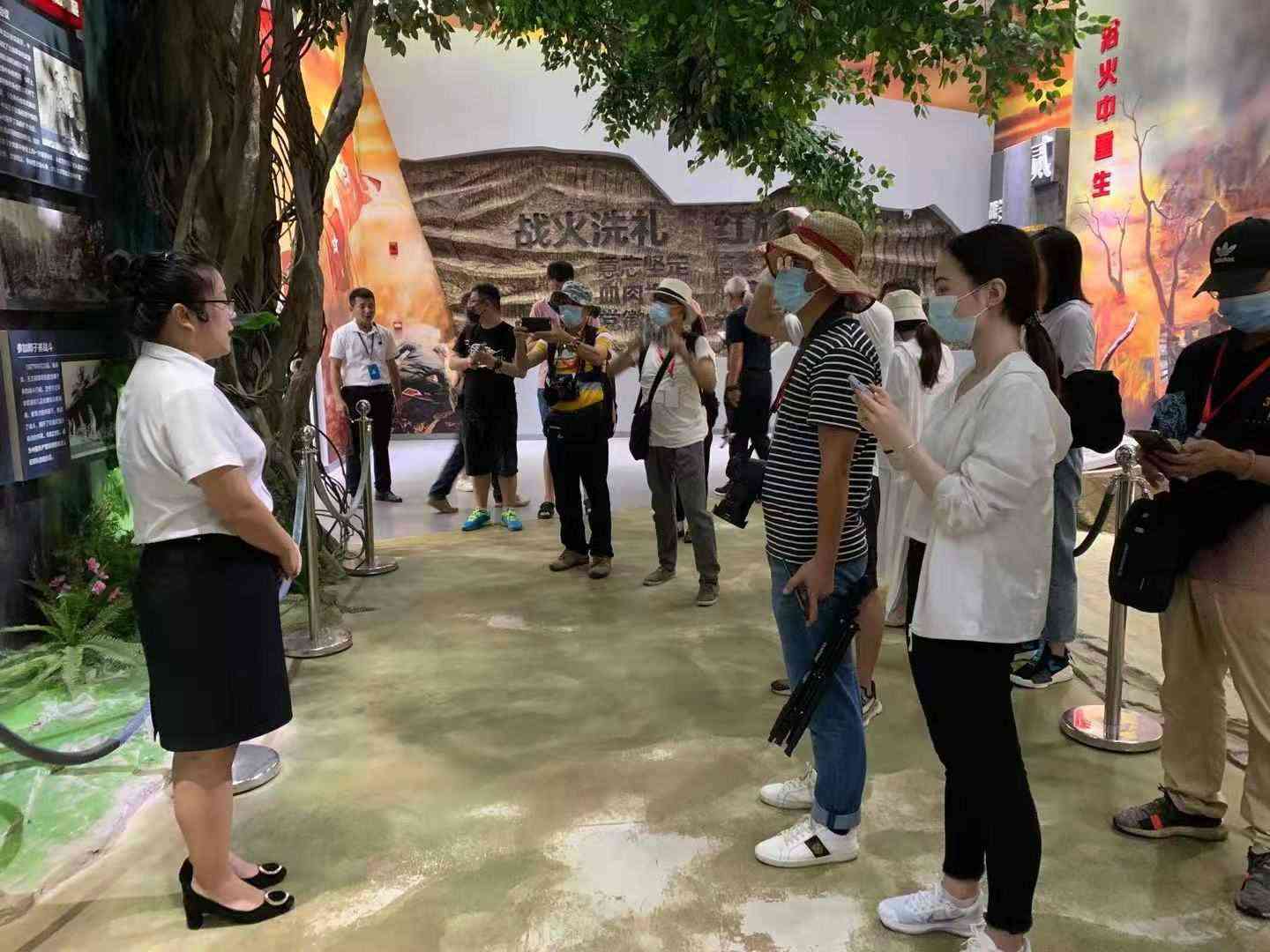 采訪團(tuán)在母瑞山革命根據(jù)地紀(jì)念園聆聽講解