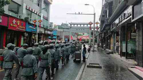 在上午進行的活動中,光明社區(qū)居民積極參與,人們穿上紅軍軍裝,沿街一路行走到紅軍當年駐扎過的胡家大院、巷子口、萬壽宮等地,聽解說員認真介紹紅軍長征在沙土的紅色故事;在民心廣場錢壯飛同志雕像前,解說員介紹了錢壯飛烈士的事跡以及“龍?zhí)度?rdquo;錢壯飛、李克農和胡底深入龍?zhí)痘⒀ǖ墓适?,黨員同志們還重溫了入黨誓詞。