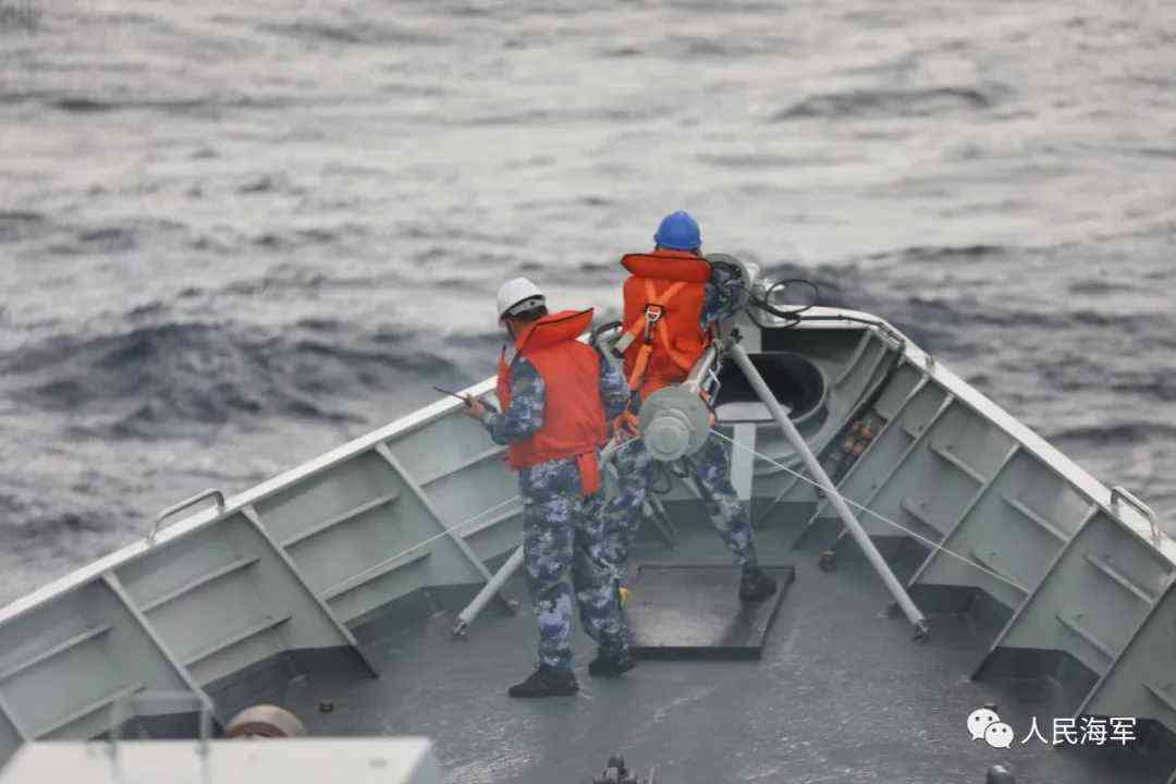 上午9時,揚州艦完成橫向補給后,快速駛離補給陣位,開始擔負警戒巡邏任務。南京艦快速機動至高郵湖艦后方,準備開始縱向補給。此時,突遇局部強對流天氣,海上風浪逐漸增大。